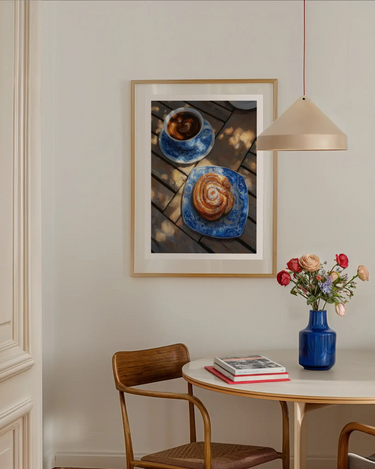 Vår Fika kollektion är inspirerad av svensk fikakultur – tidlösa motiv med kaffekoppar, bakverk och varma toner.